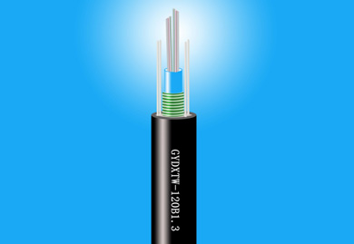12-core fiber ribbons are housed in a high-modulus loose tube filled with waterproof compound. The tube is wrapped with plastic-coated steel tape (PSP) and water-blocking material. Two parallel steel wires are added, and the whole is sheathed in polyethylene.